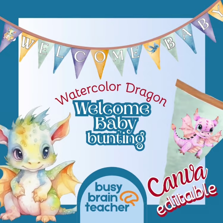 Add a touch of magic to your celebration with this Welcome Baby Watercolor Dragon Bunting. Featuring soft, whimsical watercolor dragons, this charming banner is the perfect decoration for baby showers, nurseries, or welcome-home celebrations. Designed to be both beautiful and easy to use, it adds a gentle fantasy feel without overwhelming your space.